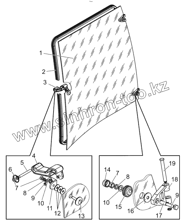 Каталог запасных частей к технике: МТЗ БЕЛАРУС 1502. Стекло боковое левое. Фиксатор левый