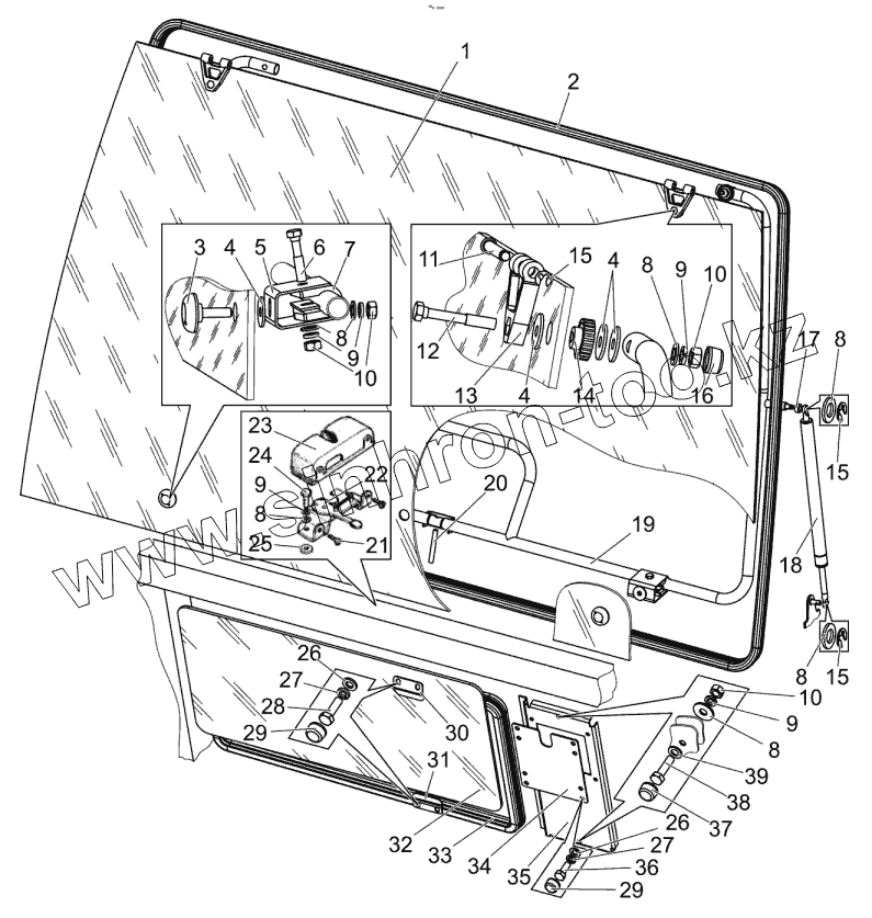 Каталог запасных частей к технике: МТЗ БЕЛАРУС 1502. Стекло заднее. Установка панели