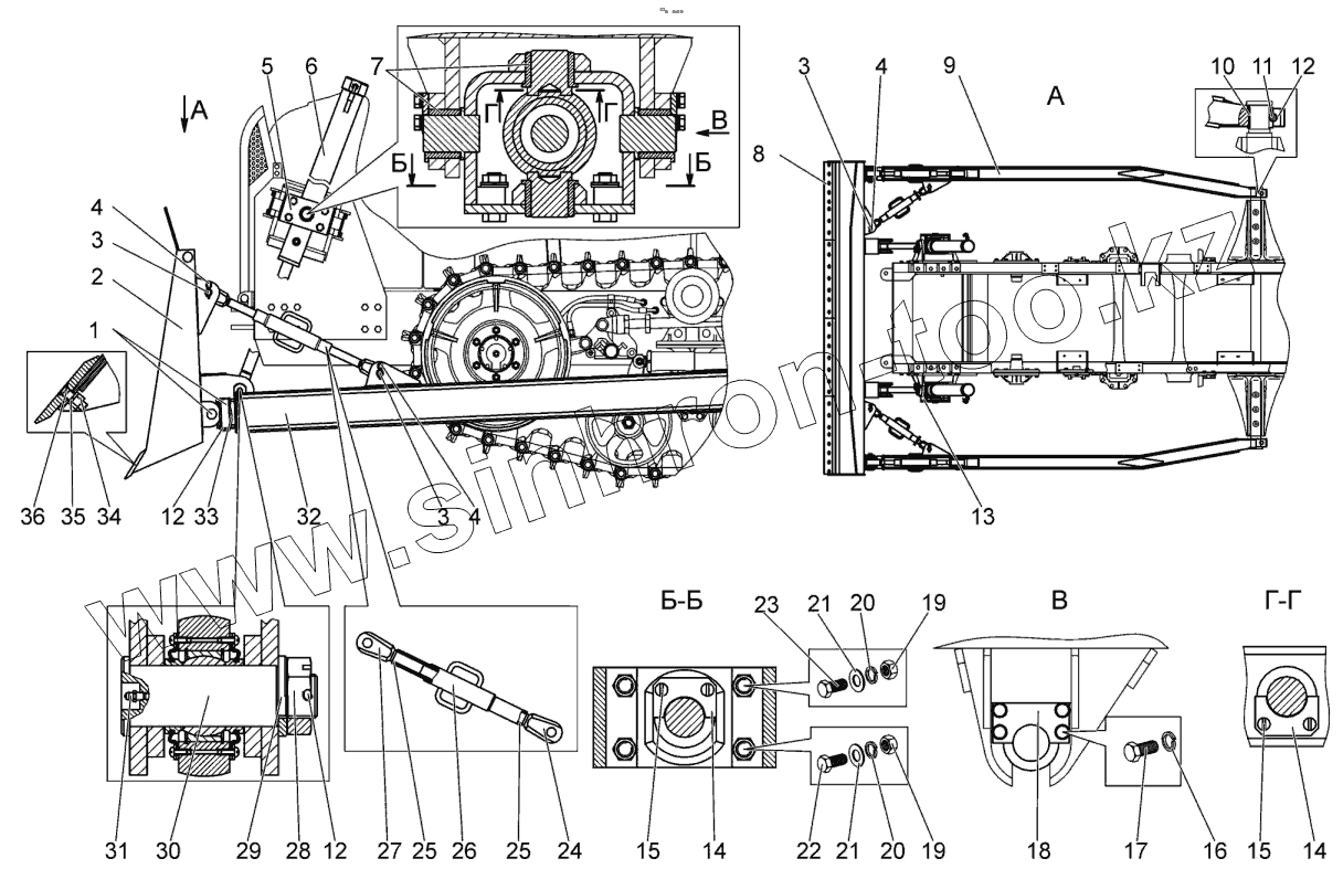 Каталог запасных частей к технике: МТЗ БЕЛАРУС 1502. Установка (прямого) отвала. Раскос