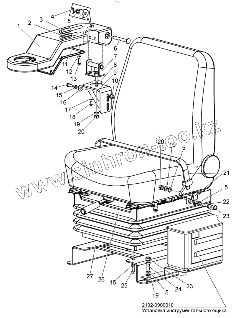 Каталог запасных частей к технике: МТЗ БЕЛАРУС 1502. Установка сиденья. Установка подлокотника. Подлокотник