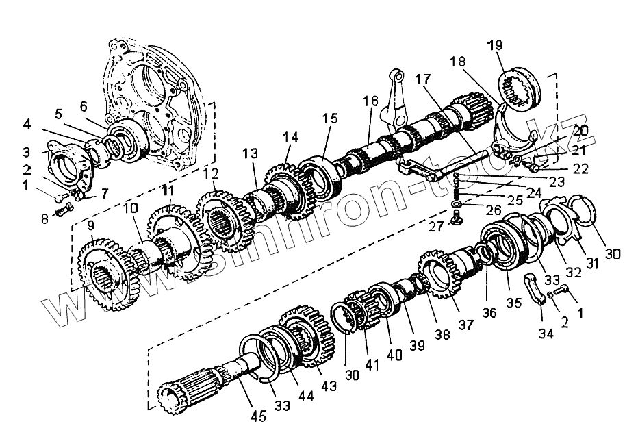 Каталог запасных частей к технике: МТЗ МЛПТ-344. Коробка передач – Вал промежуточный. Шестерня