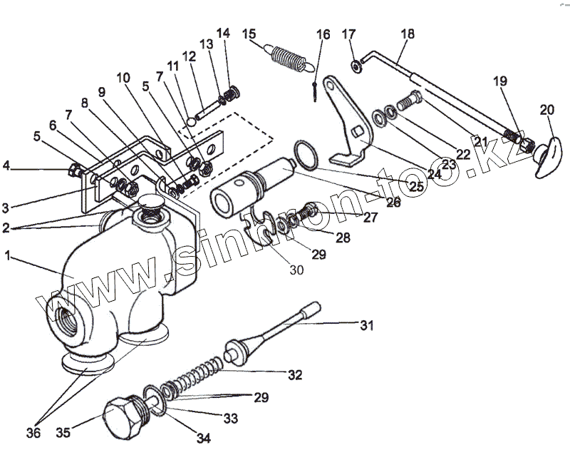 Каталог запасных частей к технике: МТЗ МЛПТ-354М. Управление блокировкой дифференциала, кран блокировки