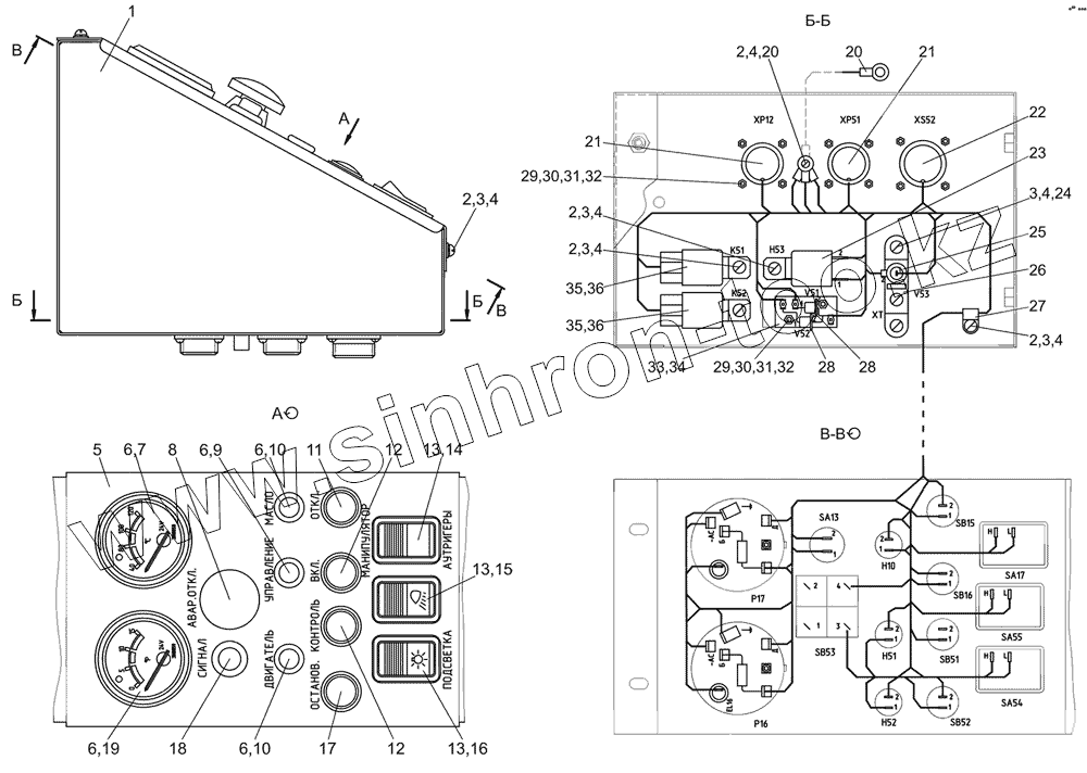 Каталог запасных частей к технике: МТЗ МР-40-01. Пульт управления. Панель с приборами