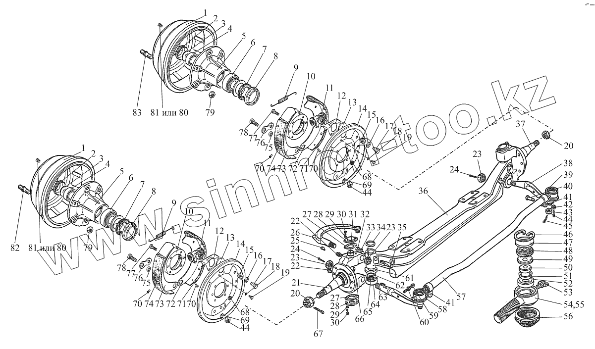 Каталог запасных частей к технике: МТЗ Ш-353М. Ось передняя с тормозами Ш353М-3000010-А