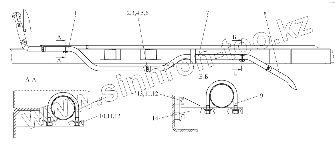 Каталог запасных частей к технике: МТЗ Ш-353М. Труба выпускная 353М2-1203010-Б