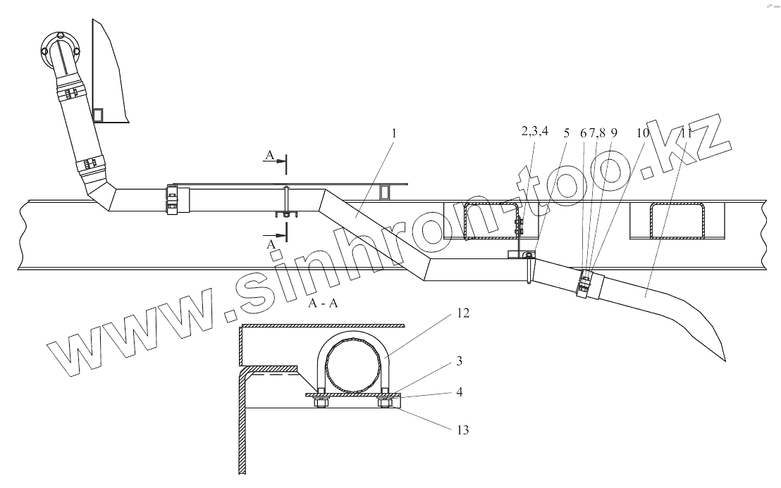 Каталог запасных частей к технике: МТЗ Ш-353М. Труба выпускная 373М-1203010