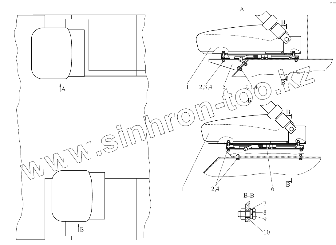 Каталог запасных частей к технике: МТЗ Ш-353М. Установка сидений 403М-6800010