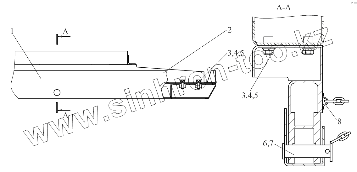 Каталог запасных частей к технике: МТЗ Ш-353М. Установка заднего бампера 363М-2800205-Б