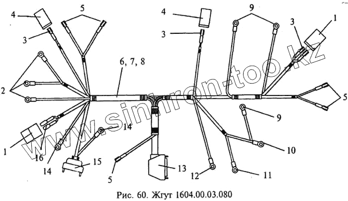 Каталог запасных частей к технике: МЗИК ДП-1604. Жгут 1604.00.03.080