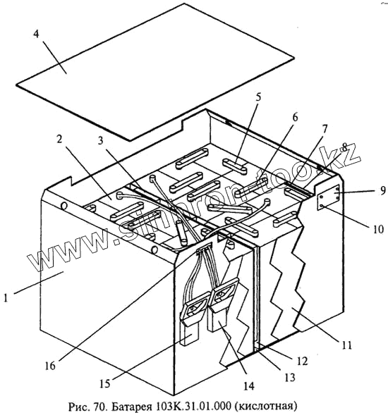 Каталог запасных частей к технике: МЗИК ЭП-103КО. Батарея 103K.31.01.000 (кислотная)