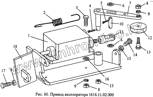 Каталог запасных частей к технике: МЗИК ЭП-1616. Привод акселератора