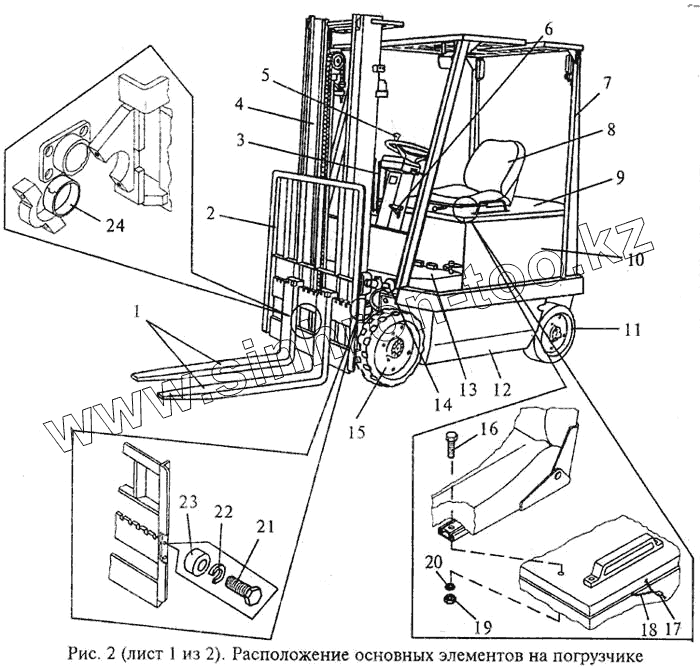 Каталог запасных частей к технике: МЗИК ЭП-1616. Расположение основных элементов на погрузчике