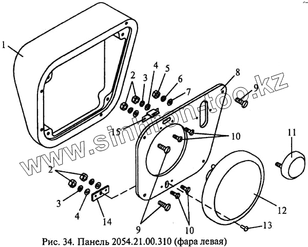 Каталог запасных частей к технике: МЗИК ЭТ-2054. Панель 2054.21.00.310 (фара левая)