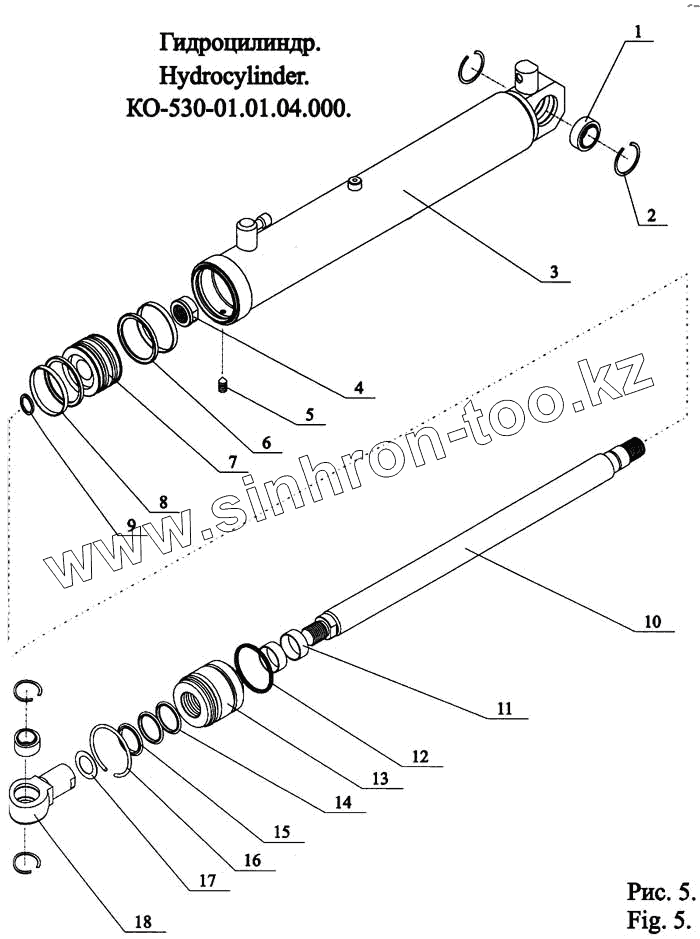 Каталог запасных частей к технике: МЗКМ КО-530-01. Гидроцилиндр КО-530-01.01.04.000