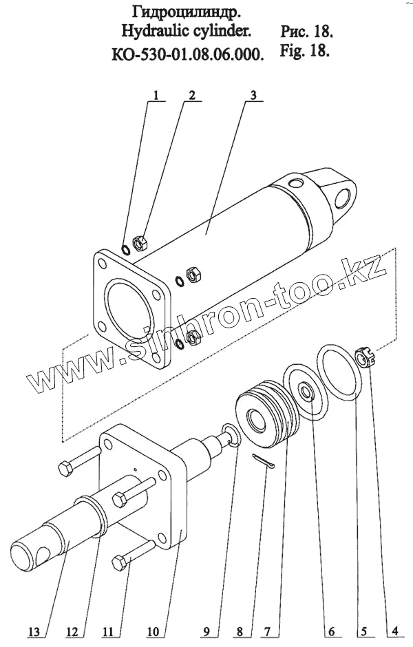 Каталог запасных частей к технике: МЗКМ КО-530-01. Гидроцилиндр КО-530-01.08.06.000