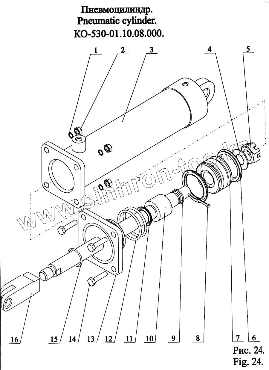 Каталог запасных частей к технике: МЗКМ КО-530-01. Пневмоцилиндр КО-530-01.10.08.000