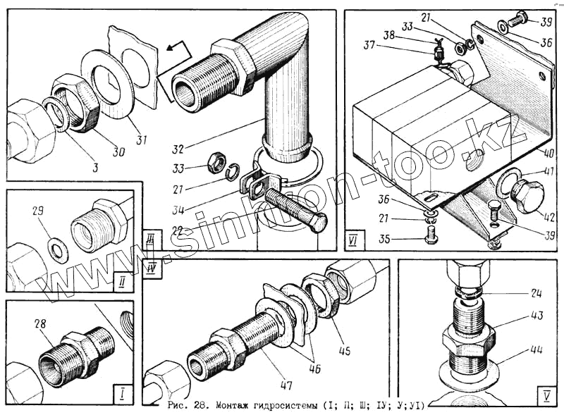 Каталог запасных частей к технике: МЗКМ КО-713. Монтаж гидросистемы
