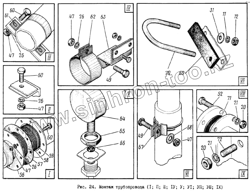 Каталог запасных частей к технике: МЗКМ КО-713. Монтаж трубопровода