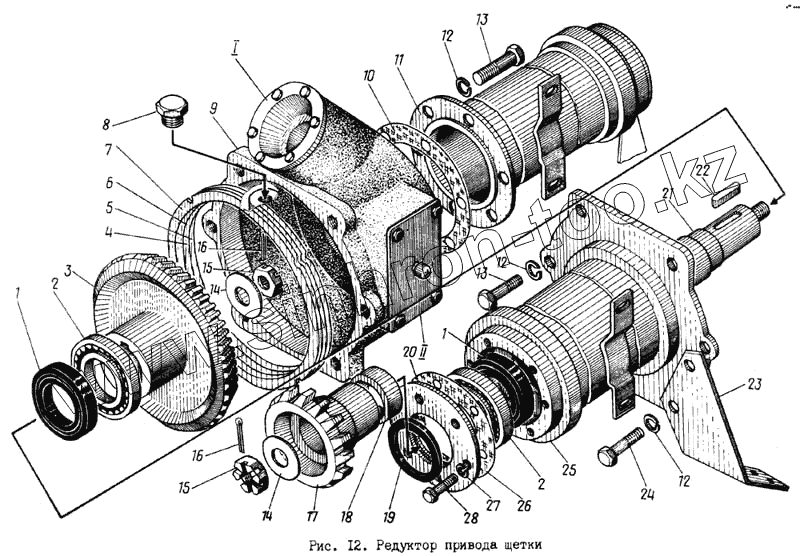 Каталог запасных частей к технике: МЗКМ КО-713. Редуктор привода щетки