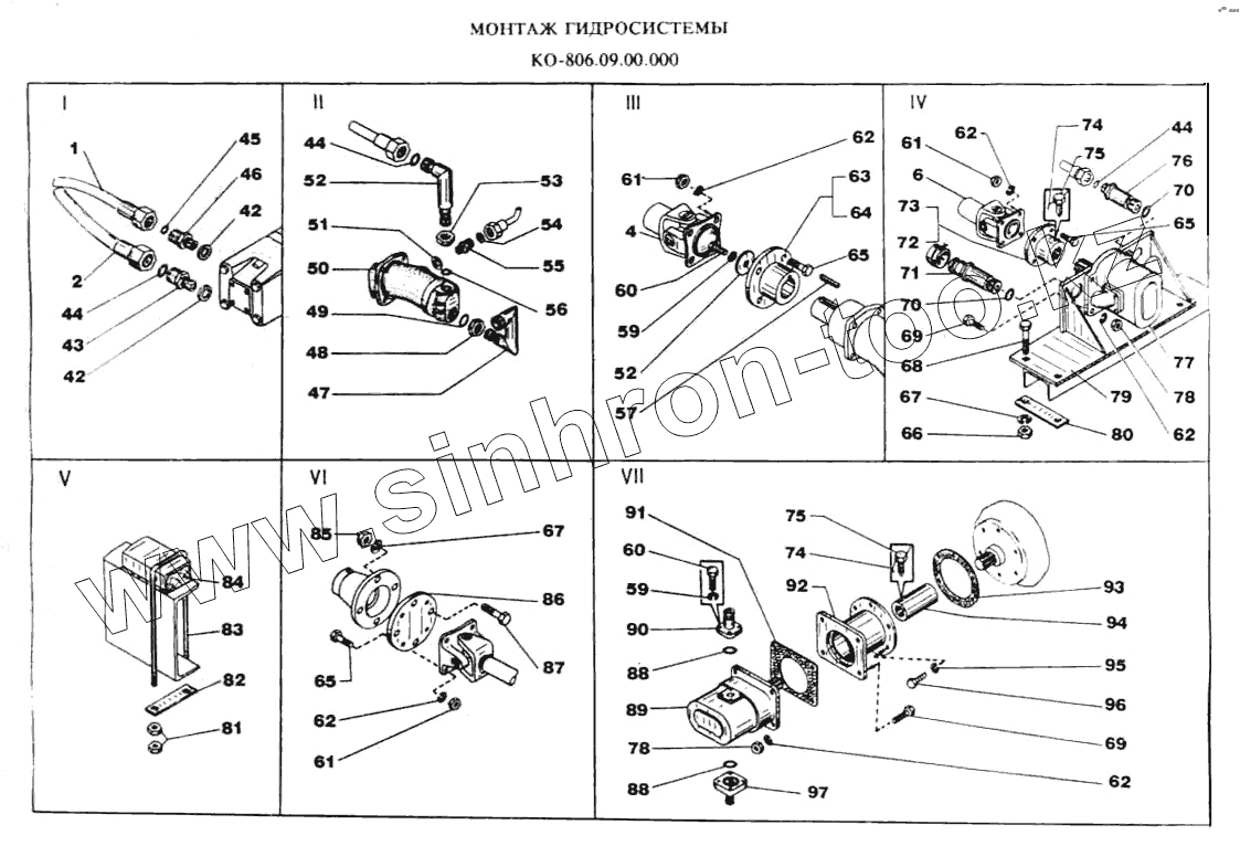 Каталог запасных частей к технике: МЗКМ КО-806. Монтаж гидросистемы