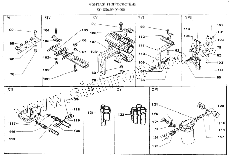 Каталог запасных частей к технике: МЗКМ КО-806. Монтаж гидросистемы