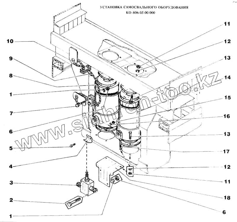 Каталог запасных частей к технике: МЗКМ КО-806. Установка самосвального оборудования