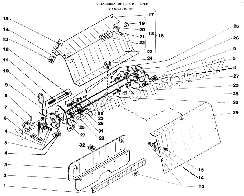 Каталог запасных частей к технике: МЗКМ КО-806. Установка шибера и дверки