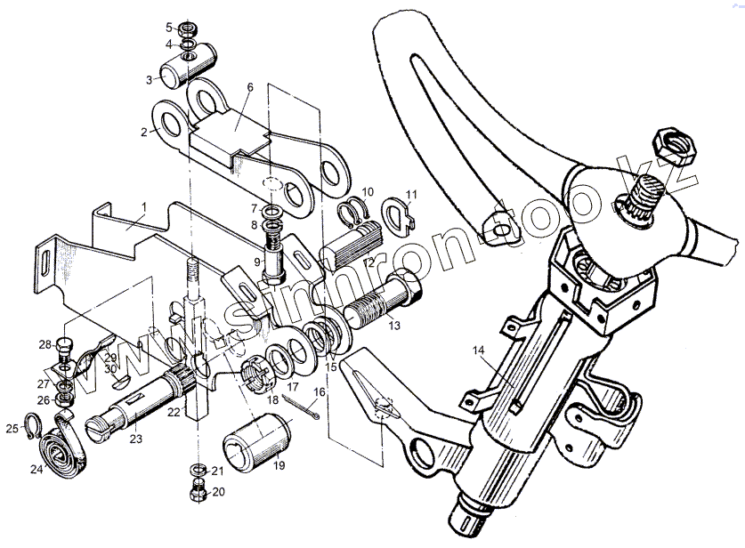Каталог запасных частей к технике: МЗКТ-69234. Кронштейн с колонкой 64221-3403008
