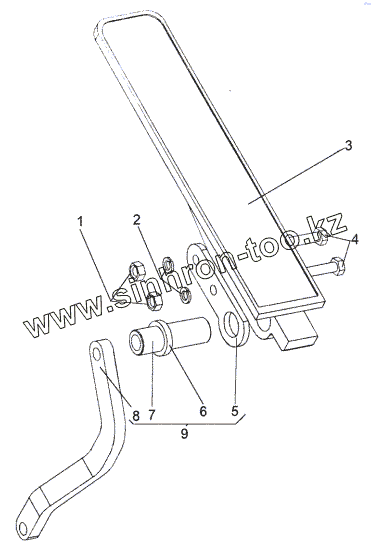 Каталог запасных частей к технике: МЗКТ-69234. Педаль с втулкой и рычагом 64221-1108008-10