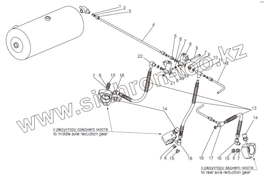 Каталог запасных частей к технике: МЗКТ-69234. Привод управления блокировкой дифференциалов