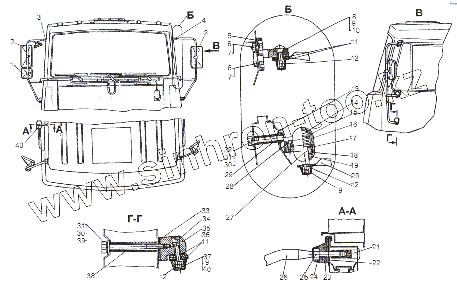 Каталог запасных частей к технике: МЗКТ-69234. Установка держателей зеркал