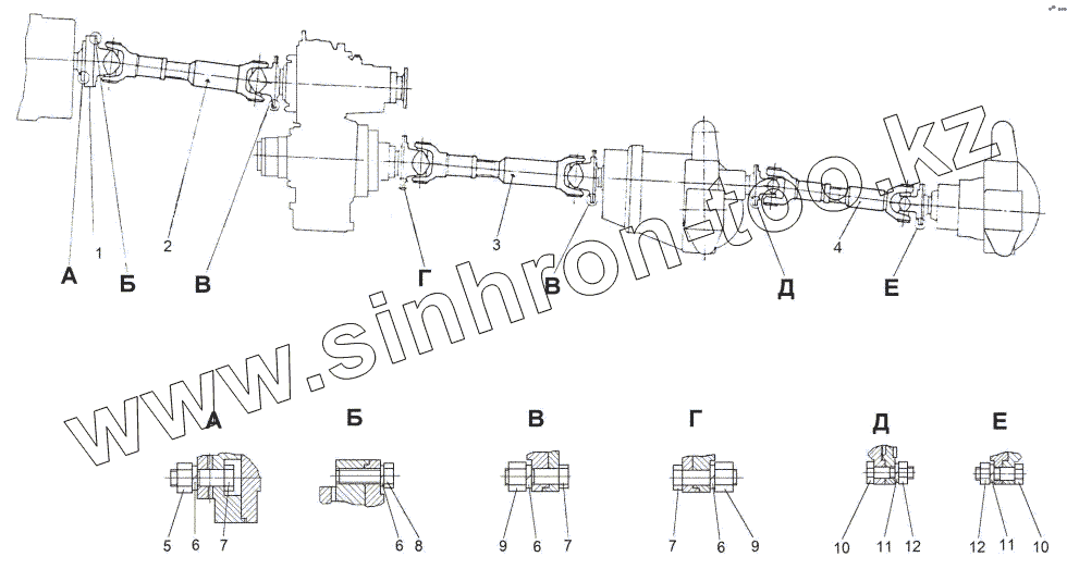 Каталог запасных частей к технике: МЗКТ-69234. Установка карданных валов