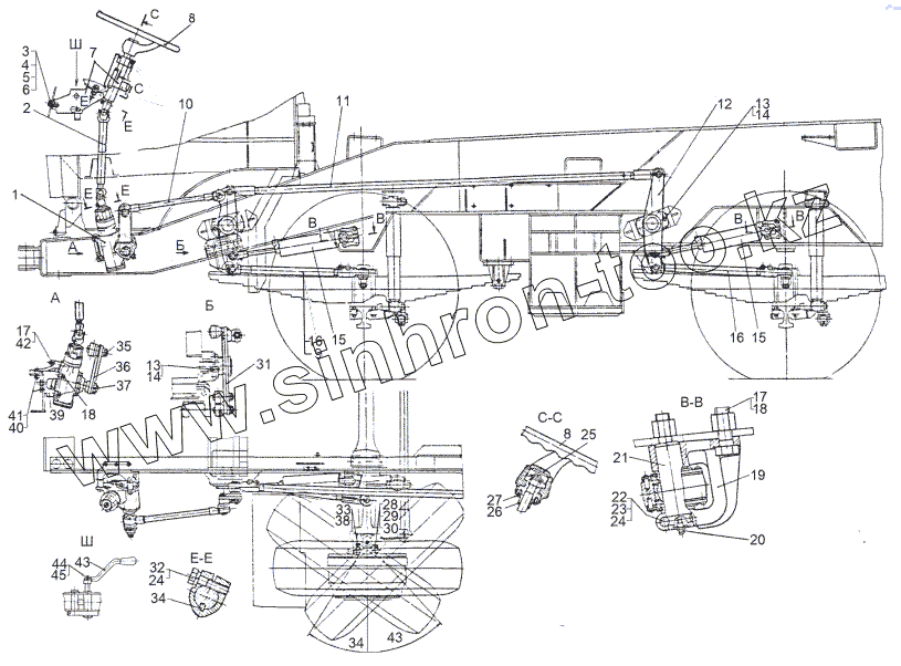Каталог запасных частей к технике: МЗКТ-69234. Установка рулевого управления