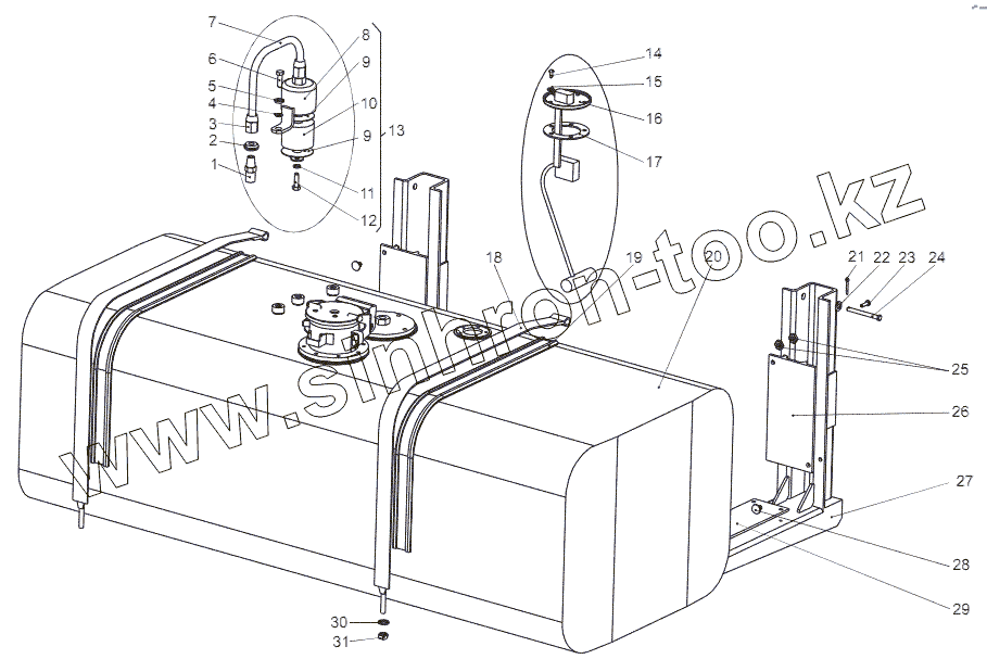 Каталог запасных частей к технике: МЗКТ-69234. Установка топливного бака