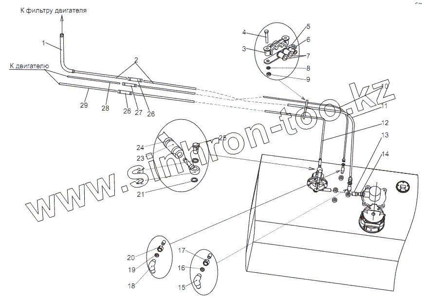 Каталог запасных частей к технике: МЗКТ-69234. Установка топливопроводов