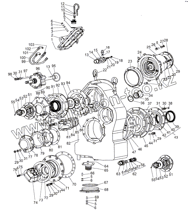 Каталог запасных частей к технике: МЗКТ-8006. Картер и детали раздаточной коробки
