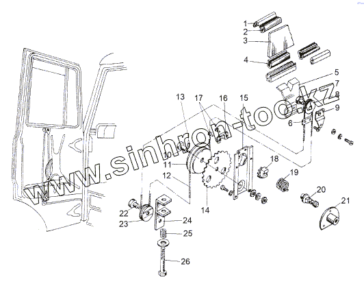 Каталог запасных частей к технике: МЗКТ-8006. Механизм подьема стекла
