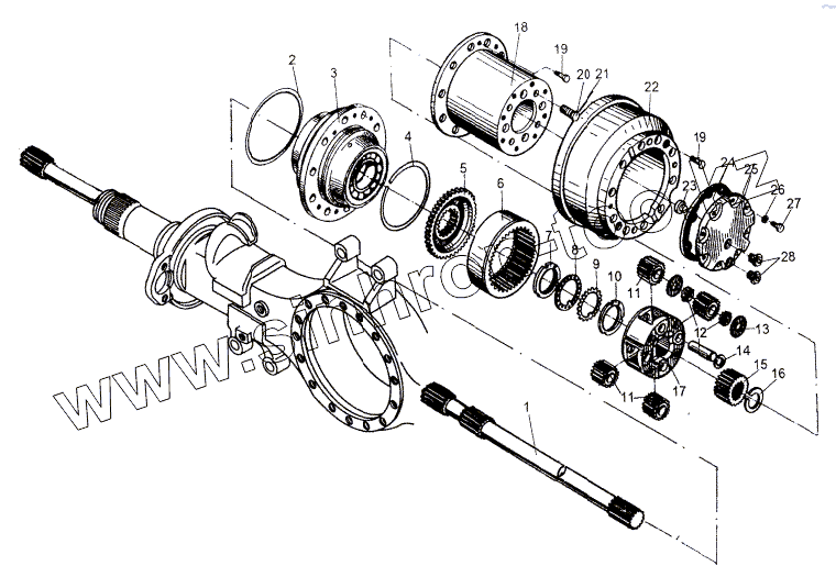 Каталог запасных частей к технике: МЗКТ-8006. Мост средний. Детали колесной передачи