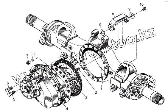 Каталог запасных частей к технике: МЗКТ-8006. Мост средний. Редуктор с картером моста