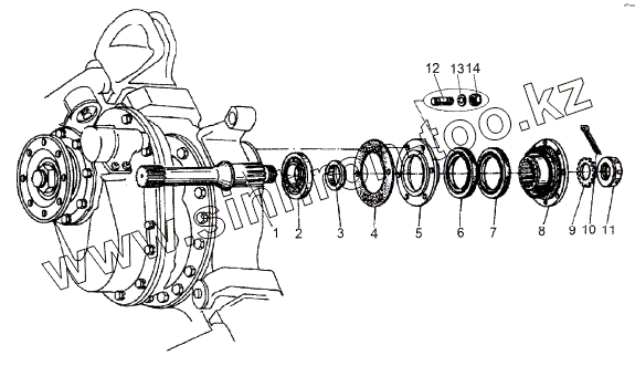 Каталог запасных частей к технике: МЗКТ-8006. Мост средний. Вал задний