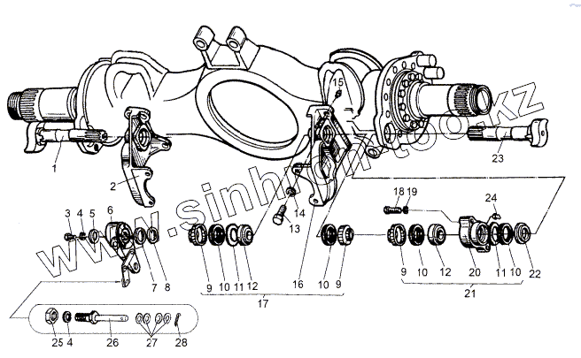 Каталог запасных частей к технике: МЗКТ-8006. Мост задний и средний. Привод тормозов