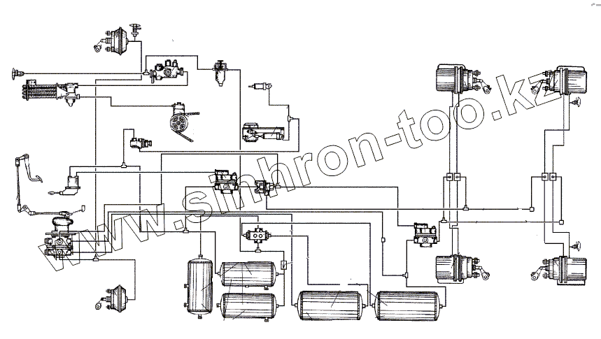 Установка воздушных баллонов стояночного тормоза и потребителей