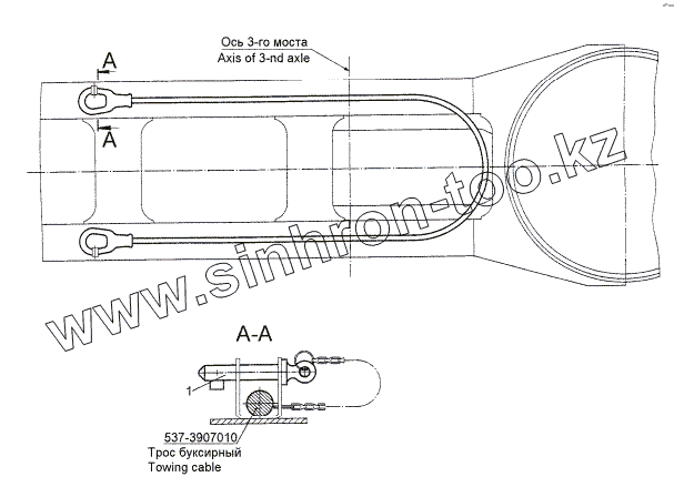 Каталог запасных частей к технике: МЗКТ-8006. Установка буксирного троса