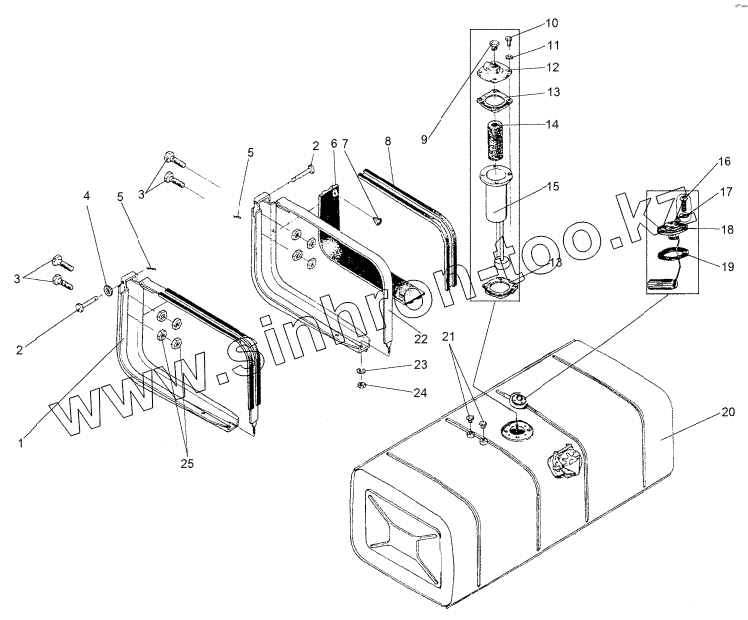 Каталог запасных частей к технике: МЗКТ-8006. Установка топливного бака (5336-1101010)