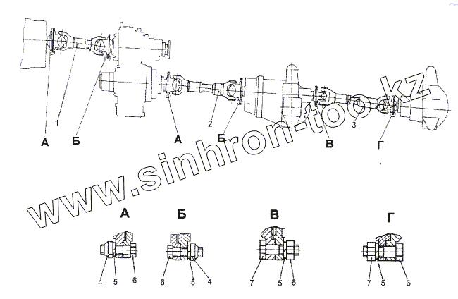 Каталог запасных частей к технике: МЗКТ-8006. Установка валов карданных