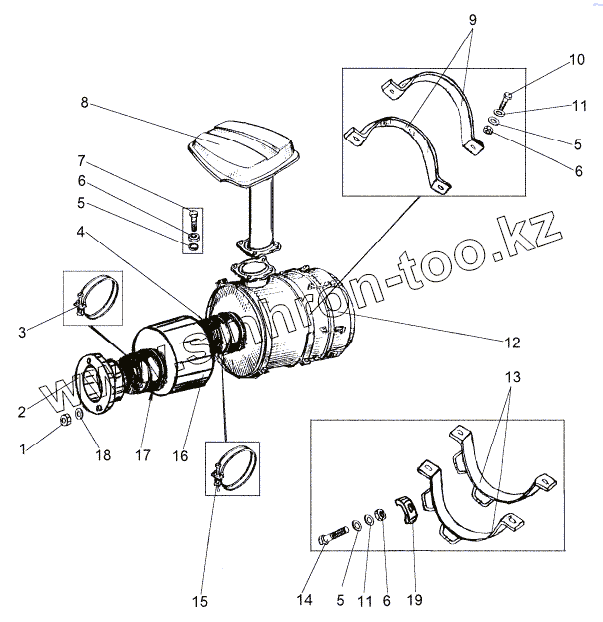 Каталог запасных частей к технике: МЗКТ-8006. Установка воздухоочистителя (238Б-1ТКР11)