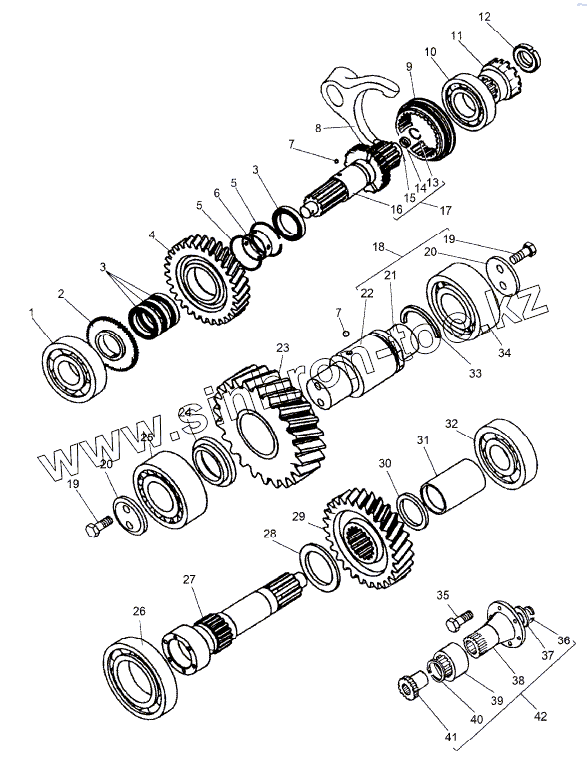 Каталог запасных частей к технике: МЗКТ-8006. Валы и шестерни раздаточной коробки