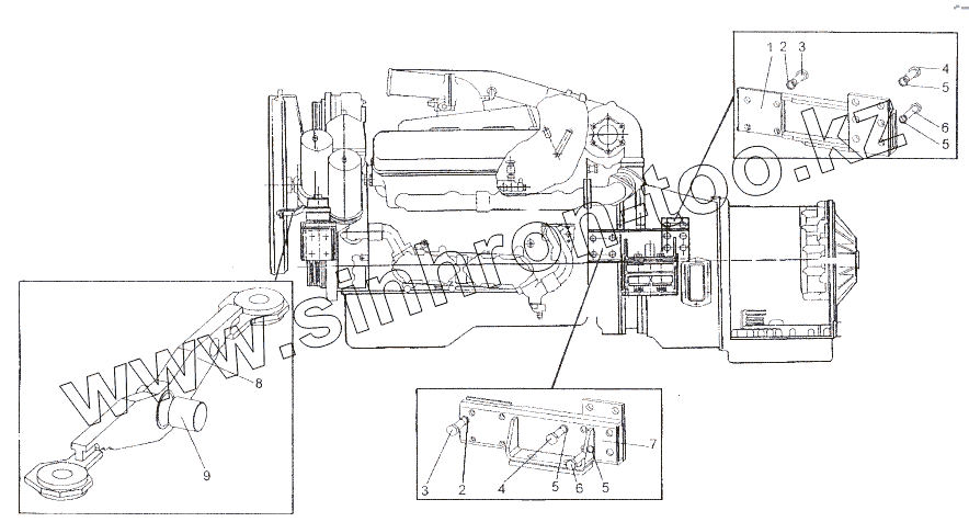 Каталог запасных частей к технике: МЗКТ-80211. Двигатель в состоянии установки на шасси