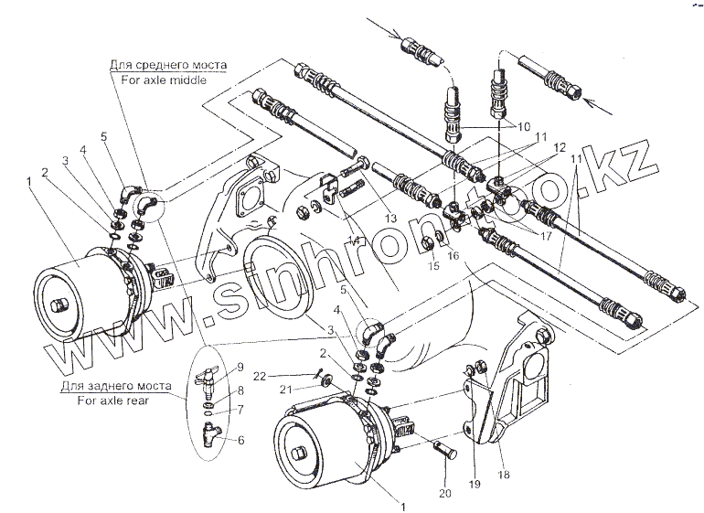 Каталог запасных частей к технике: МЗКТ-80211. Крепление задних тормозных камер и шлангов