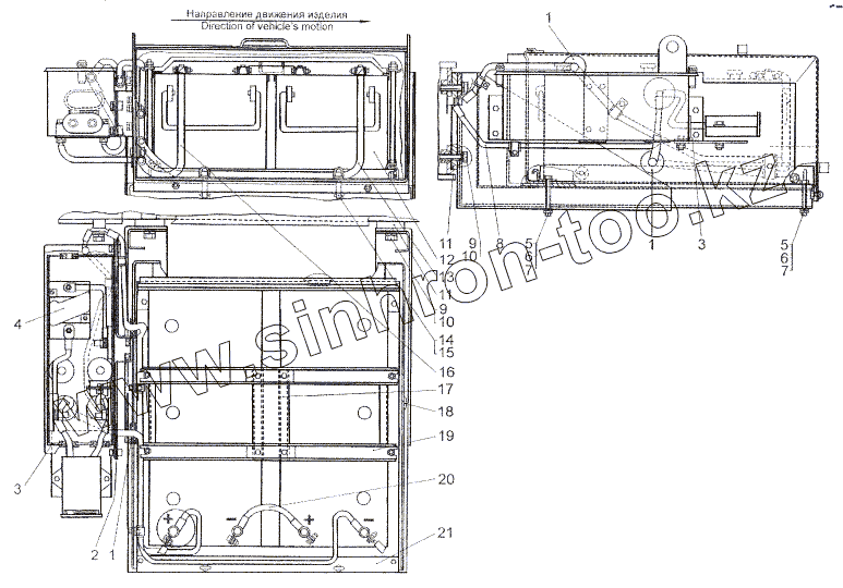Каталог запасных частей к технике: МЗКТ-80211. Установка аккумуляторных батарей и контейнера